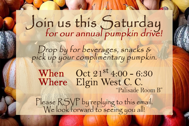 You are invited to our pumpkin event this Saturday!